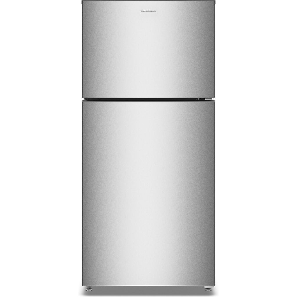 This Amana® Top-Freezer Refrigerator is no fuss, all function. Inside, Dual Crisper Drawers keep your produce in view and in reach, Adjustable Glass Shelves make it easy to adapt or clean your space, and Gallon Door Storage Bins help keep bigger beverages out of the way. Switch to Garage Ready to withstand exterior temperature from 38° to 110°F. Plus, ENERGY STAR® Certification helps you conserve energy and pay for less utilities.
