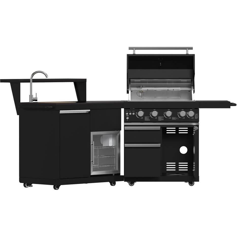 Upgrade your outdoor cooking with the Forno All'Aperto, delivering 62,600 BTU of power through three stainless-steel burners and ceramic infrared burners. Its 26"x18" cooking surface, with 8mm stainless steel grills, provides ample space for grilling. Built with enhanced durability in mind, the Forno All'Aperto features black-coated aluminized steel, offering superior corrosion resistance and strength to withstand harsh weather conditions. The sleek black sintered stone countertops add a touch of elegance, providing a durable, scratch-resistant surface that complements any outdoor setting. Mostly assembled for quick setup, it includes halogen lights, a rotisserie kit, and a pull-out waste bin. Propane-ready and easily convertible to natural gas, this unit is equipped with a waterproof cover and red control knob lights. The Forno All'Aperto is your all-in-one solution to skip the high price tags without sacrificing quality and performance. Lower the cost of living with Forno.