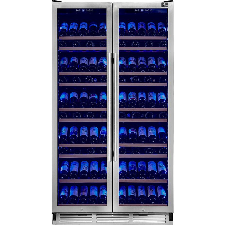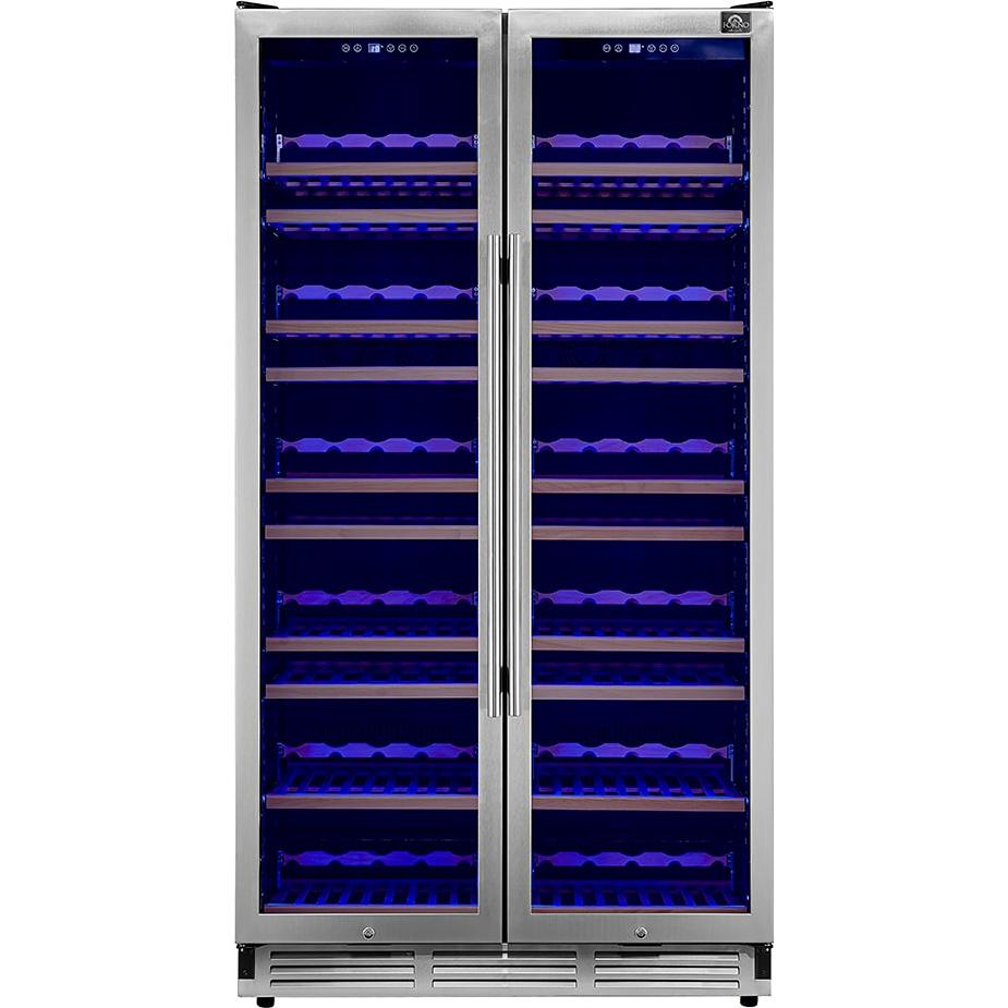 Discover the FORNO Vernazza 40 Inch Dual Zone Wine Cellar, perfect for elevating your wine collection. This premium cooler features two temperature zones for storing red and white wines at optimal conditions. The stainless steel door frame and triple-layer glass with UV protection safeguard against light and condensation. Designed for wine enthusiasts, it includes flexible sliding shelves, display shelves, and elegant LED lighting. The touch screen panel allows precise control, while the charcoal air filter neutralizes odors. A high-efficiency compressor ensures reliable performance, and the lockable door provides security. With a 25.07 cu.ft. capacity, it holds up to 166 bottles. Energy-efficient and cost-effective, the FORNO Vernazza combines quality and performance without the hefty price tag. Enhance your living space and wine experience with Forno's innovative design. Lower your cost of living while enjoying the finest in wine storage solutions.