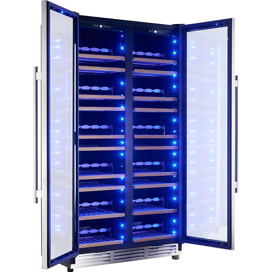• With twenty elegant wooden shelves, this wine cooler accommodates up to 166 wine bottles, providing ample space for both your favorite vintages and new discoveries