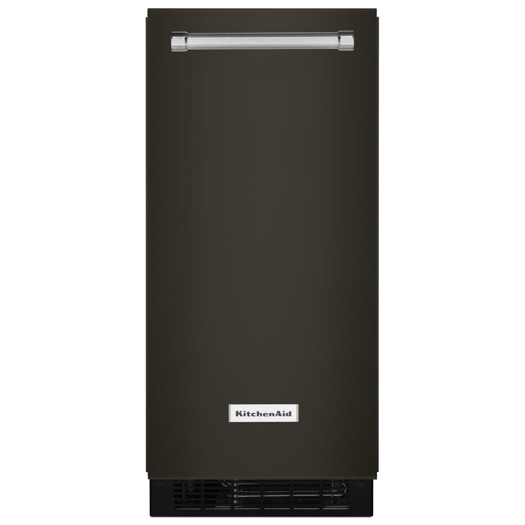 This 15 automatic ice maker uses Clear Ice Technology to help produce cubes of uniform shape and clarity for every occasion. Distinctive styling makes it an appealing complement to other KitchenAid® appliances, with Fully Flush Installation for a built-in look. The signature handle design opens the door to reveal a storage bin that holds up to 25 pounds of ice.