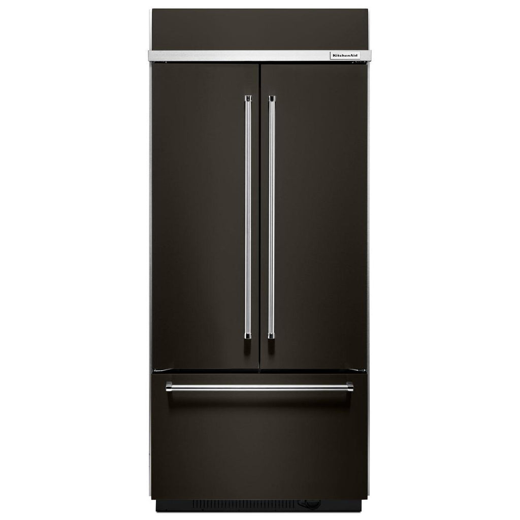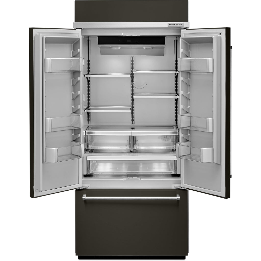 A bold blend of professionally-inspired styling and sleek touches for the home. This striking French Door Bottom Mount refrigerator features Satin Textured Handles with iconic KitchenAid Brand Medallions and the KitchenAid® Badge, a symbol of uncompromised quality.