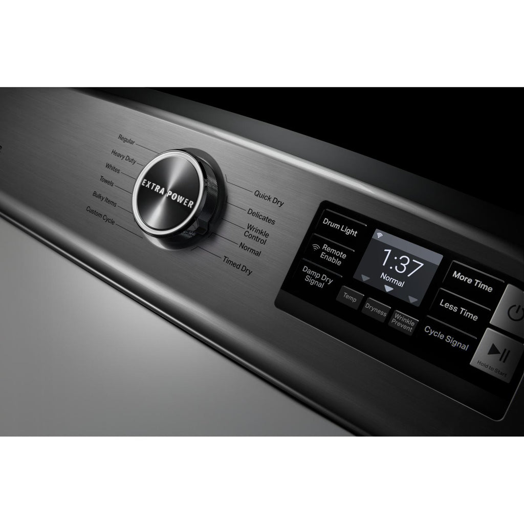 One push of the Extra Power button on Maytag® heavy duty dryers boosts drying power on any cycle by extending time, heat and tumbling.* (Results may vary based on load size and type.) This top load dryer helps evenly dry loads with Advanced Moisture Sensing. Plus, smart gas dryer features like remote start and cycle notifications help you stay in control and efficiently manage laundry from anywhere.** (Appliance must be set to remote enable. WiFi & App Required. Features subject to change. Details and privacy info at maytag.com/connect.)