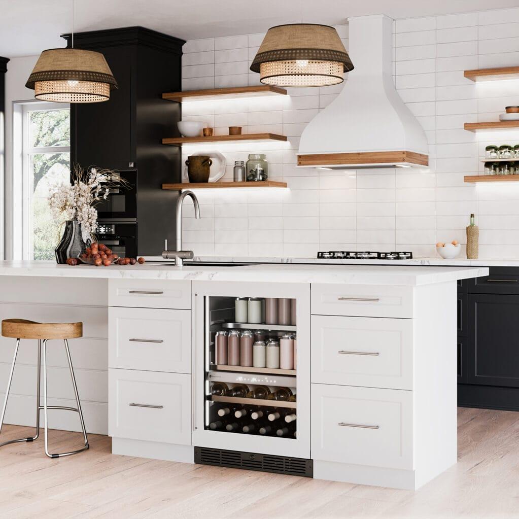 Discover the perfect blend of style and functionality with the Silhouette Pro Gen 3 – SPRWBC052D3SS-P 24" Built-in Wine and Beverage Center Panel-Ready. This sleek unit features a built-in design that accommodates up to 79 beverage cans and 19 standard Bordeaux wine bottles. Its panel-ready door ensures seamless integration with your cabinetry for a custom look. The dual-zone cooling system provides ideal storage conditions with an upper temperature range of 34°F – 50°F (1°C – 10°C) and a lower range of 50°F – 64°F (10°C – 18°C). Enjoy the convenience of a patent-pending wine shelf with adjustable bottle spacing, soft-close, full-extension wine shelf, and optimized shelf spacing for tall cans and upright bottles. Additional features include zero-clearance hinges, anti-glare LED side lighting, and a field-reversible door swing for ultimate versatility.