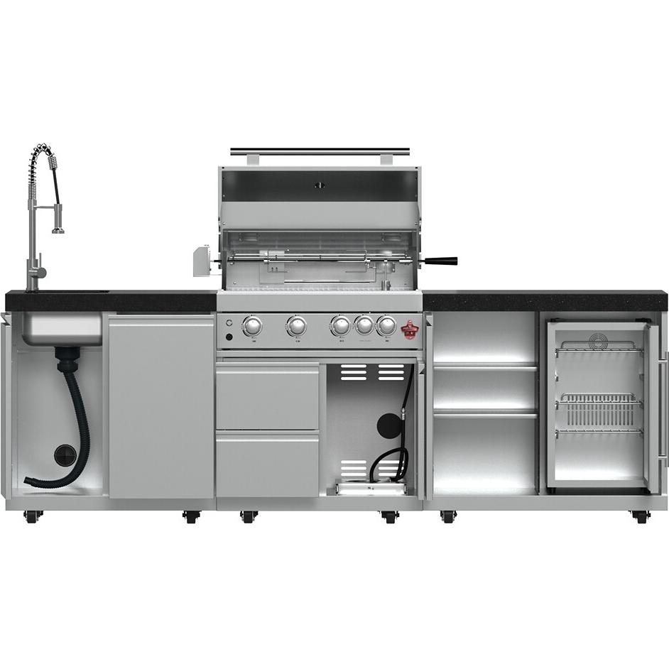 Le Forno Bulnes Outdoor Kitchen Center avec gril de 30 pouces et centre de boissons est une solution tout-en-un conçue pour transformer votre espace extérieur en une cuisine gastronomique. Alliant performance professionnelle et design élégant, cet ensemble modulaire est idéal pour les amateurs de cuisine en plein air.