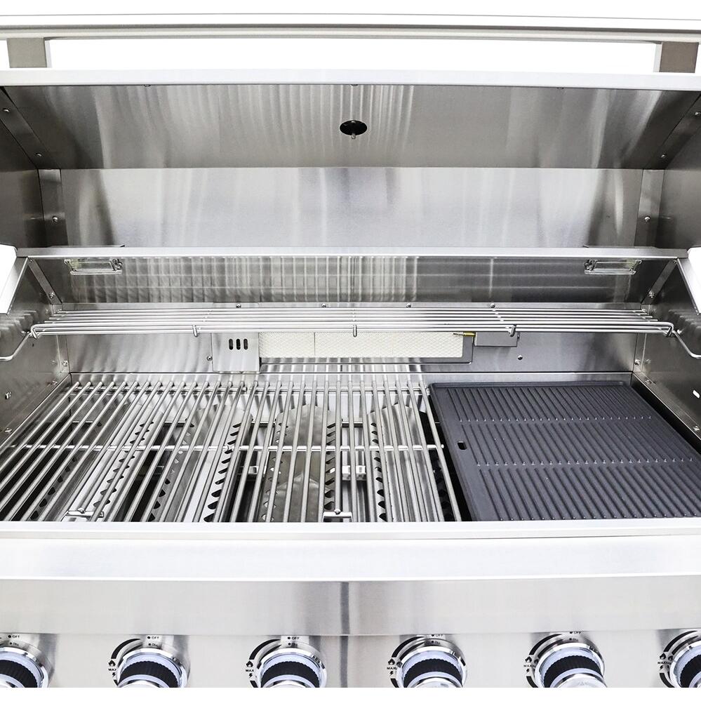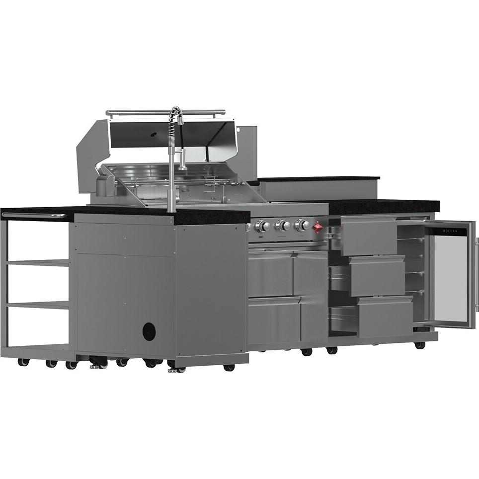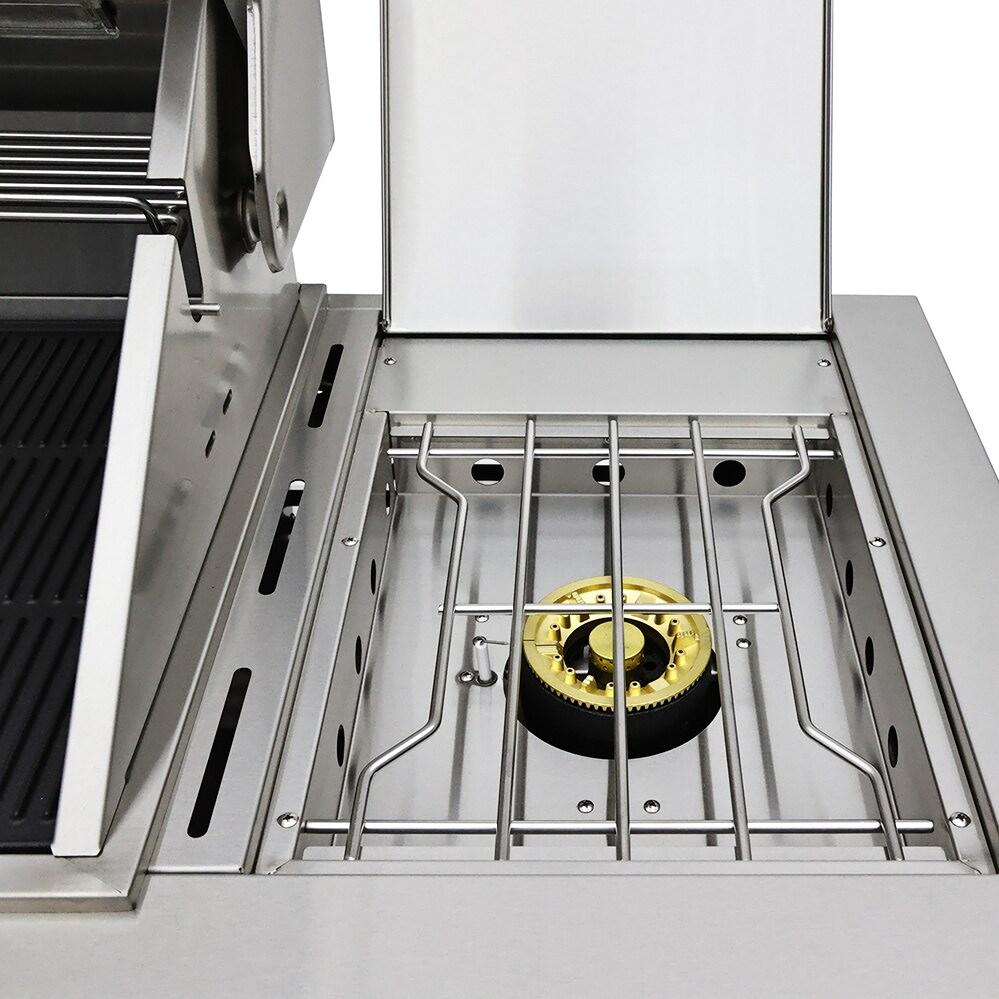 Cuisinez, rafraîchissez et recevez avec ce centre de cuisine extérieure complet de 40 pouces, doté de brûleurs en acier inoxydable 304, de élégants comptoirs en pierre frittée noire, d'une plaque en fonte, d’un brûleur latéral, d’un kit de rôtisserie, d’un centre de boissons, d’éclairages halogènes et d’une généreuse surface de cuisson de 38 x 18 pouces, parfaite pour les grands festins en plein air.