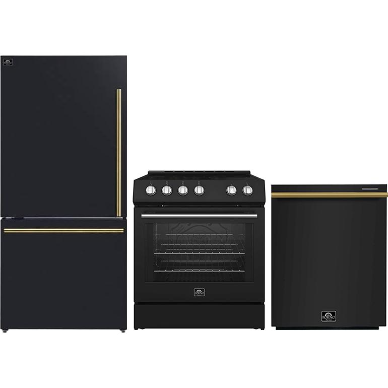 Modernisez votre cuisine avec l’ensemble de cuisine Forno 3?pièces. Le réfrigérateur à congélateur inférieur de 31?po et 17,2?pi³ à profondeur de comptoir dispose d’une machine à glace intégrée et d’un design élégant qui s’intègre parfaitement à vos armoires. La cuisinière électrique Forno Leonardo Espresso de 30?po offre une performance puissante avec quatre éléments radiants et une surface en vitrocéramique pour une répartition uniforme de la chaleur et une cuisson précise. L’ensemble comprend également un lave-vaisselle à commandes supérieures fonctionnant silencieusement à 49?dB, avec cuve en acier inoxydable durable, trois paniers pour un chargement flexible, six programmes de lavage et commandes électroniques avec affichage DEL élégant.