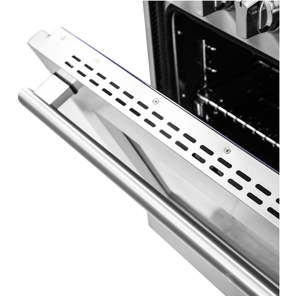 La cuisinière à gaz Forno All de 36 pouces apporte un style professionnel et des performances de qualité dans votre cuisine avec son design durable en acier inoxydable de qualité 304. La surface de cuisson est équipée de 6 brûleurs scellés d'une puissance totale de 83 000 BTU, comprenant 1 brûleur double à anneau scellé pour mijoter, faire fondre du chocolat ou préparer des sauces. Les grilles continues en fonte offrent une stabilité maximale pour déplacer les ustensiles de cuisine sur une cavité de surface de cuisson émaillée encastrée, ce qui permet de contenir les déversements et les éclaboussures pour un nettoyage facile. Le four à convection de 4,32 pieds cubes est doté d'un intérieur en émail bleu qui facilite le nettoyage. Les fenêtres du four en verre ont 3 couches et permettent une bonne isolation tout en préservant un visibilité facile. Ce four a également une puissance totale de 26 000 BTU, offrant une puissance suffisante pour la cuisson, la rôtisserie et la cuisson au four. Deux grilles de four entièrement télescopiques en acier inoxydable sont inclus avec la cuisinière, un anneau de wok concave et un kit de conversion LP. De plus, les boutons en métal revêtus de zinc avec anneaux de lunette conservent leur beauté pendant des années. La série 6239 est distribuée en quantité limitée. Tous les produits FORNO sont assortis d'une garantie de 2 ans.