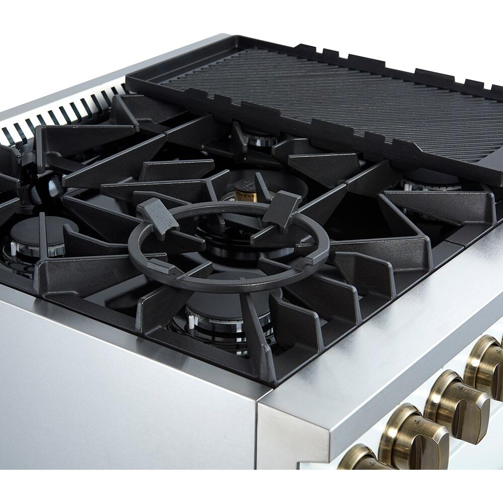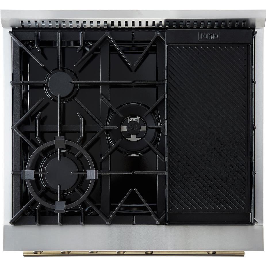 Découvrez l’alliance parfaite du style et de la performance avec la cuisinière au gaz Giovanni 30 po Alta Qualita, offerte en blanc avec des accents en laiton antique. Conçue pour libérer votre créativité culinaire, elle est dotée de 5 brûleurs puissants totalisant 67 000 BTU, dont un brûleur à double anneau polyvalent, idéal autant pour mijoter des sauces que pour saisir des steaks. Le four à convection de 4,32 pi³ assure des résultats impeccables, que ce soit pour des pâtisseries dorées à point ou des plats rôtis savoureux. Avec des accessoires inclus comme un support pour wok et un panier de cuisson à air chaud, cette cuisinière s’adapte à toutes vos envies tout en simplifiant le nettoyage. Offrez élégance et fiabilité à votre cuisine avec la Giovanni. Réduisez le coût de la vie avec Forno.