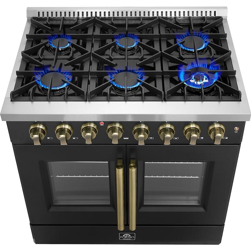 La cuisinière bicombustible Galiano de 36 pouces apporte une esthétique et une experience professionnelle dans votre cuisine grâce à sa conception durable en acier inoxydable. Les portes françaises uniques permettent d'ouvrir les portes pour accéder à votre four et offrent jusqu'à 12 pouces d'espace supplémentaire. La surface de cuisson comprend 6 brûleurs scellés avec une puissance totale de 83 000 BTU, dont 1 brûleur scellé à double anneau pour mijoter, faire fondre le chocolat ou préparer des sauces. Les grilles continues en fonte offrent une stabilité maximale aux ustensiles de cuisine et permettent un déplacement facile des casseroles et des poêles sur la surface de cuisson en émail encastrée, qui garde les déversements et les éclaboussures contenus et facilite le nettoyage. Le four électrique d'une capacité de 5,36 pieds cubes dispose d'une puissance totale de 4 800 watts. Il est équipé d'un intérieur en émail noir et d'un ventilateur à convection qui garantit une cuisson rapide, précise et uniforme. Les portes françaises sont dotées de fenêtre en verre à 3 couches afin de préserver la chaleur, tout en maintenant une visibilité facile. La cuisinière inclut deux grilles de four chromées et un kit de conversion au GPL sont inclus. De plus, les boutons en métal revêtus de zinc avec bagues de finition conservent leur beauté pendant des années.