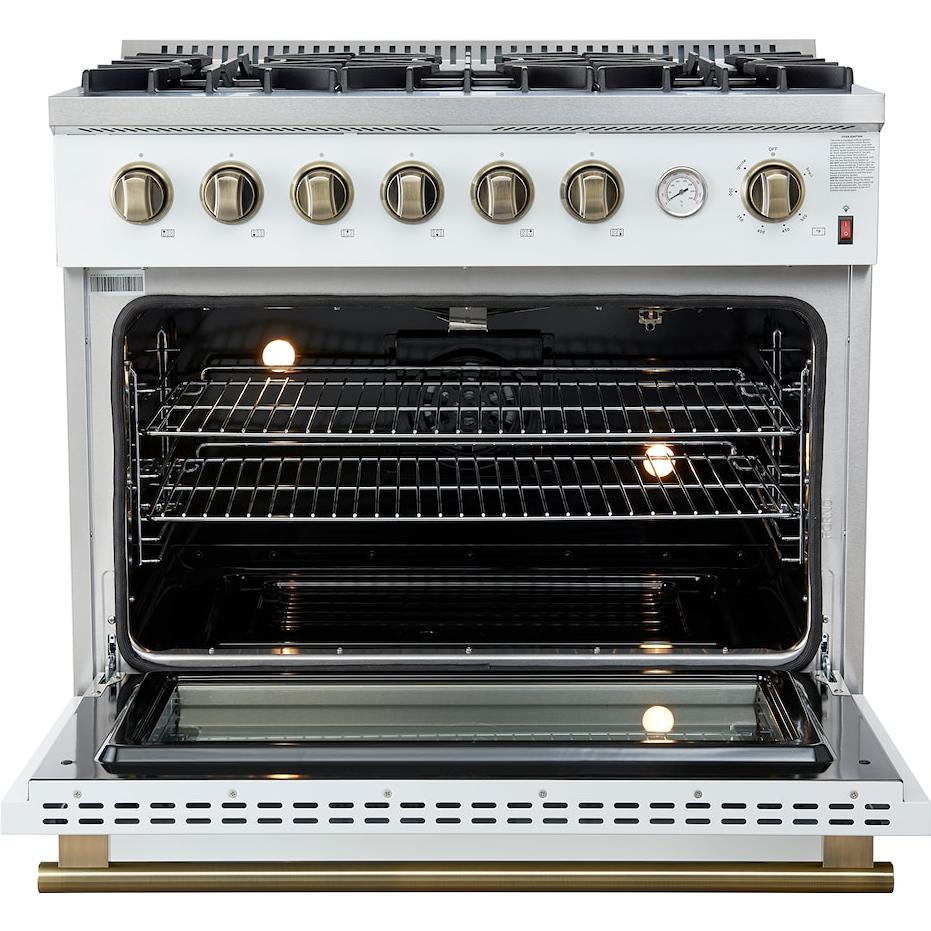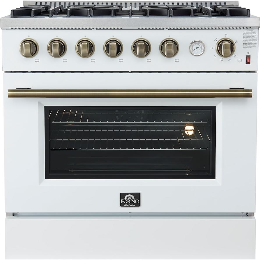 La cuisinière à gaz Forno Marco de 36 pouces sublime votre cuisine avec un style professionnel et des performances robustes. Conçue en acier inoxydable durable, elle dispose d’une surface de cuisson haute performance totalisant 67 000 BTU répartis sur 6 brûleurs scellés, adaptés aussi bien aux mijotages qu’aux saisies à haute température. Les grilles continues en fonte assurent stabilité et facilité de déplacement des casseroles. Le spacieux four à convection de 5,36 pi³ offre une puissance combinée de cuisson et de grillage de 26 000 BTU pour une précision optimale. Son intérieur en émail noir et ses deux lampes halogènes garantissent une meilleure visibilité et un entretien simplifié. Les grilles du four peuvent accueillir des plats jusqu’à 24 po de large sur 15 po de profondeur. Un brûleur de cuisson dissimulé empêche les éclaboussures et les odeurs, facilitant ainsi le nettoyage. La poignée de style professionnel et les boutons de commande en métal recouverts de zinc avec bagues décoratives apportent durabilité et sophistication. Les fonctions de sécurité incluent une rallumage automatique. Compatible avec le gaz naturel, elle est livrée avec un kit de conversion propane. Élevez votre cuisine en alliant style, durabilité et performance.