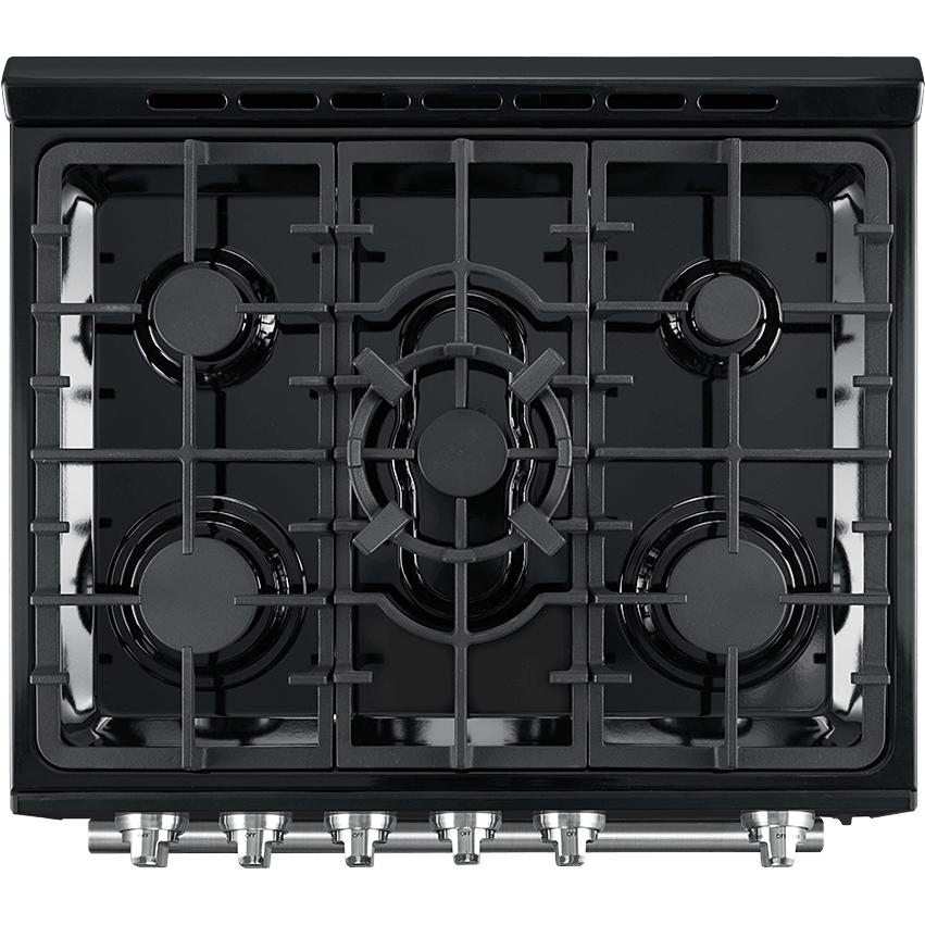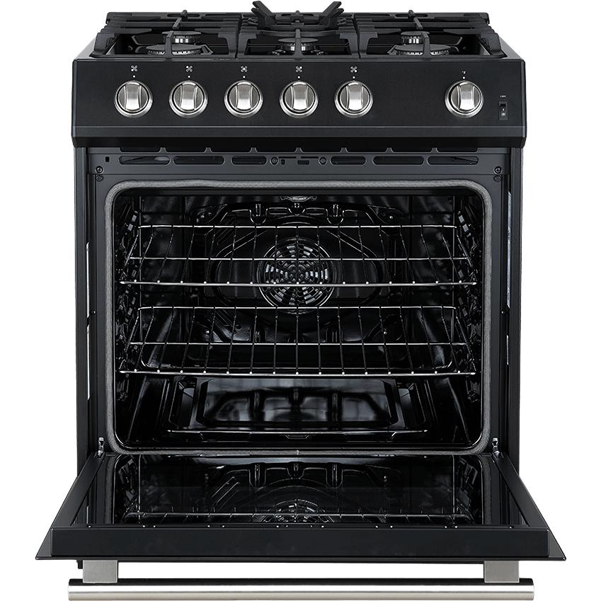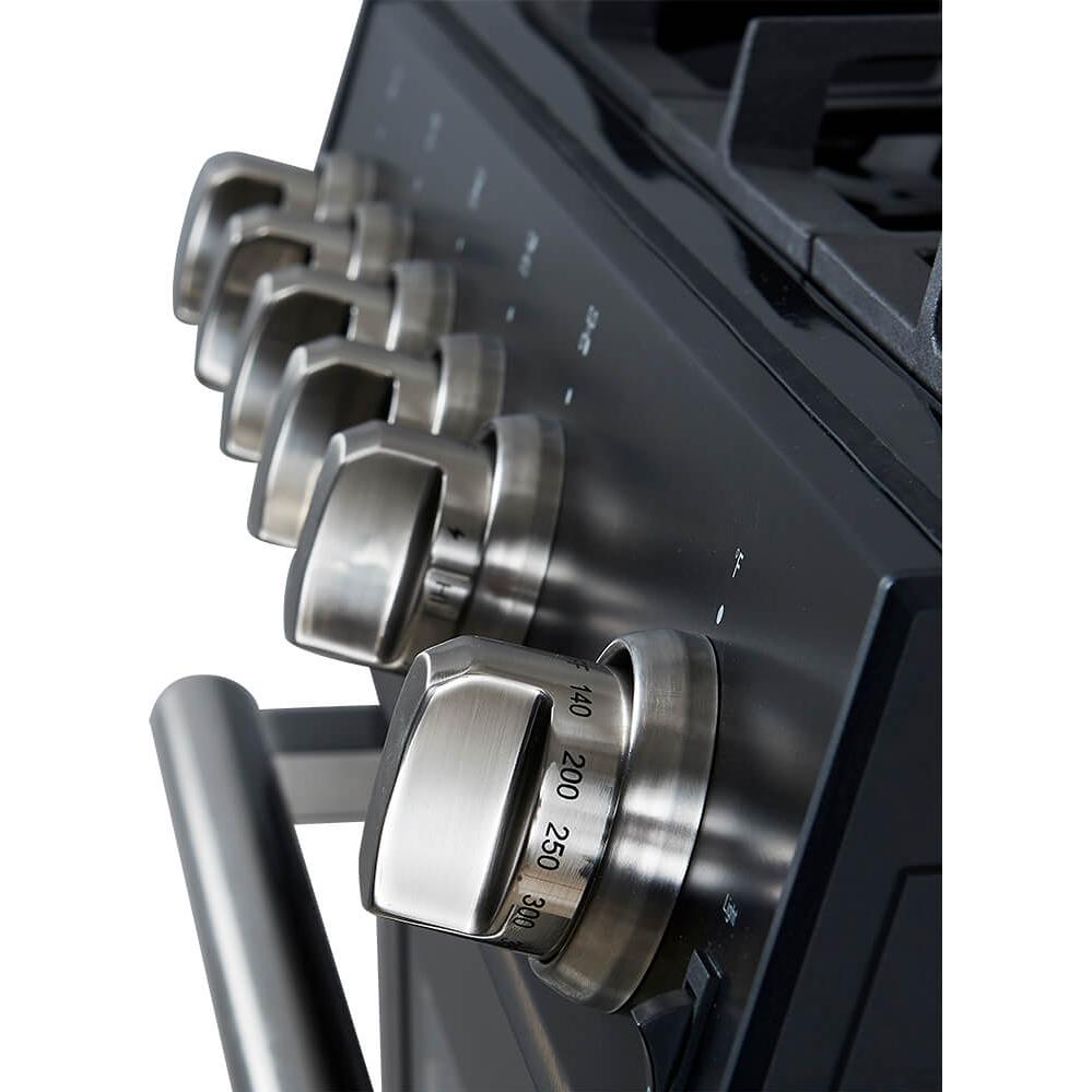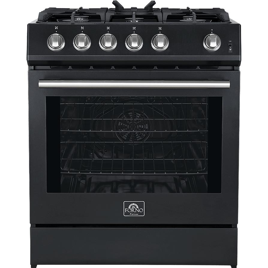 La cuisinière à gaz Forno Leonardo 30" en noir allie un design moderne à des performances dignes d’un professionnel. Sa surface de cuisson puissante offre une puissance totale de 39 500 BTU, répartie sur des grilles continues en fonte pour une stabilité optimale et un déplacement aisé des ustensiles. La surface émaillée noire en retrait simplifie le nettoyage en retenant les éclaboussures. Le four à convection spacieux de 5,0 pi³ fournit une puissance de cuisson et de grillage de 22 500 BTU, avec deux hauteurs de grilles ajustables et un ventilateur à convection haute performance pour une distribution uniforme de la chaleur. Conçue pour la fiabilité, la fonction de rallumage automatique assure des performances constantes, tandis que la compatibilité avec le gaz naturel et le kit de conversion au propane inclus offrent une flexibilité d’installation.