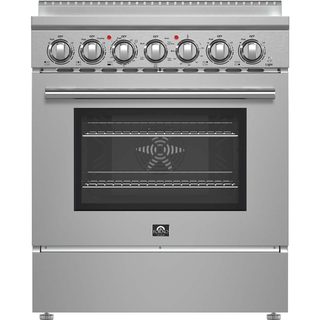 La cuisinière électrique autoportante Forno Paolo de 30 po en acier inoxydable avec four à convection véritable de 4,38 pi³ est la mise à niveau ultime pour votre cuisine. Cette cuisinière remarquable allie style et performance de haut niveau grâce à sa finition en acier inoxydable élégante et sa surface de cuisson en vitrocéramique, qui assure une répartition uniforme de la chaleur sur ses 5 éléments radiants, totalisant une puissance de 7 800 watts.