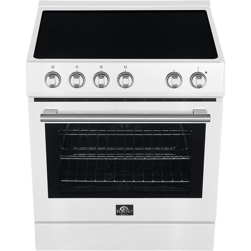 Découvrez la cuisinière électrique Forno Leonardo Espresso de 30 pouces et 5,0 pi³ en blanc, une véritable révolution pour votre cuisine. Avec ses accents en laiton antique, ses 4 éléments radiants et son four à convection de 3 500 watts, elle allie style et performance de haut niveau.