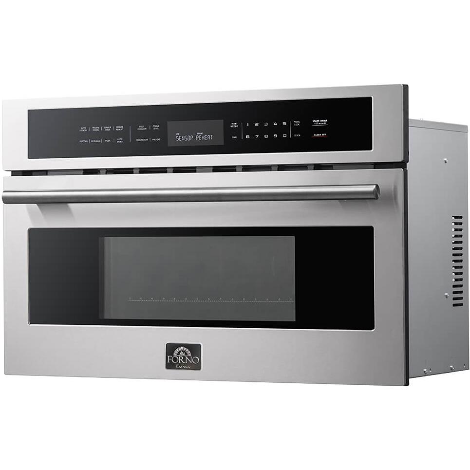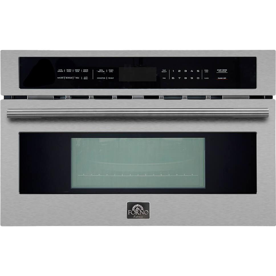 Le Forno Oliena est un four micro-ondes et à convection de 30 pouces, à la fois élégant et pratique, avec une capacité de 1,6 pi³. Son intérieur en acier inoxydable facilite le nettoyage, tandis que les commandes intuitives permettent de passer aisément du mode micro-ondes au mode four. Offrant une puissance de 1 000 watts, il fait bouillir de l'eau en seulement 1 minute et 50 secondes. Grâce à l’écran DEL et aux commandes tactiles en verre, vous accédez facilement à des fonctions telles que décongélation, maïs soufflé, boisson, cuisson par capteur ou menu automatique. En mode four, profitez d’une cuisson à convection véritable de 1 700 watts, d’une fonction gril de 1 750 watts et d’un élément de cuisson de 600 watts, idéal pour préparer des plats sans utiliser le four principal. La fonction de préchauffage rapide réduit les temps d’attente, vous permettant de savourer vos repas plus rapidement. Polyvalent et performant, le Forno Oliena transforme votre quotidien culinaire.