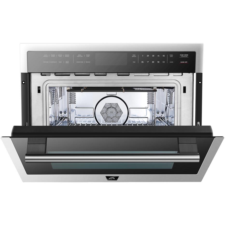 Le Forno Oliena est un four à micro-ondes et à convection élégant et pratique de 24 pouces avec une capacité de 1,6 pi³. Son intérieur en acier inoxydable facilite grandement le nettoyage, tandis que ses commandes conviviales permettent de passer facilement du mode micro-ondes au mode four. Avec une puissance de cuisson de 1 000 watts, vous pouvez faire bouillir de l'eau en seulement 1 minute et 50 secondes en mode micro-ondes standard. Les commandes tactiles en verre et l’affichage DEL vous permettent de naviguer simplement entre les différents modes micro-ondes tels que décongélation, maïs soufflé, boisson, cuisson par capteur ou menu automatique.