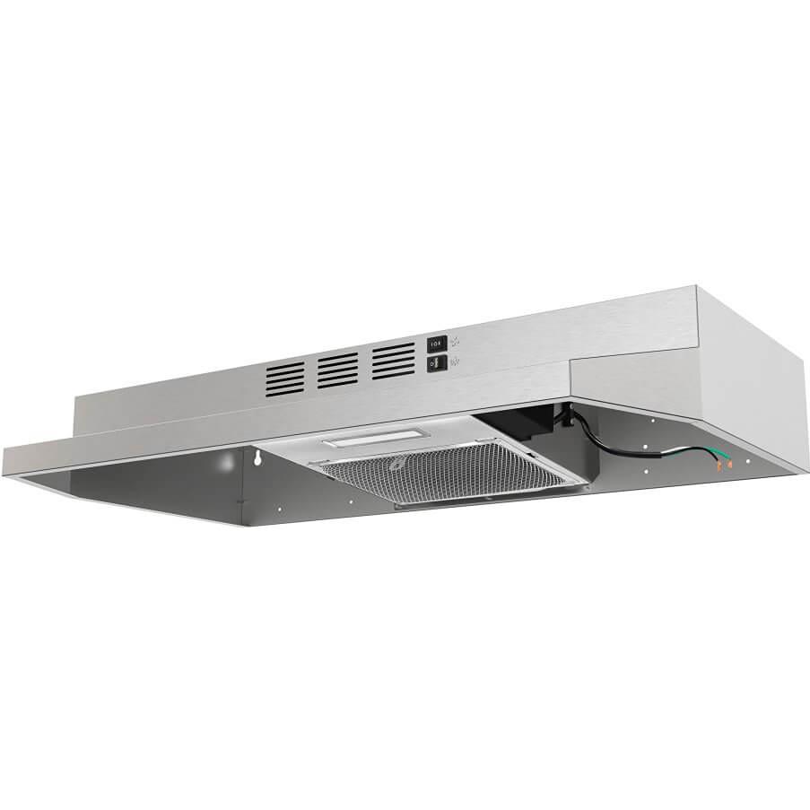 La hotte de cuisinière sous-armoire Forno Cappa de 30 po allie performance puissante et design compact et épuré, idéale pour les petites cuisines et les appartements. Dotée d’un ventilateur d’extraction à 2 vitesses, elle élimine efficacement la fumée et les odeurs tout en fonctionnant silencieusement à seulement 54 dB. Son installation flexible permet une configuration avec ou sans conduit, grâce aux filtres en maille d’aluminium lavables au lave-vaisselle et à un filtre à charbon pour une qualité d’air améliorée. Sa hauteur ultra-mince de 4,7 po permet un gain d’espace optimal sous n’importe quelle armoire. Les lumières DEL de 2 W offrent un éclairage écoénergétique pour une visibilité optimale pendant la cuisson. Des commandes mécaniques simples permettent de passer facilement d’une vitesse à l’autre pour une ventilation sur mesure. Soutenue par une garantie de 2 ans sur les pièces et la main-d’œuvre, la hotte Forno Cappa est un choix fiable et élégant pour toute cuisine. Réduisez le coût de la vie avec Forno.