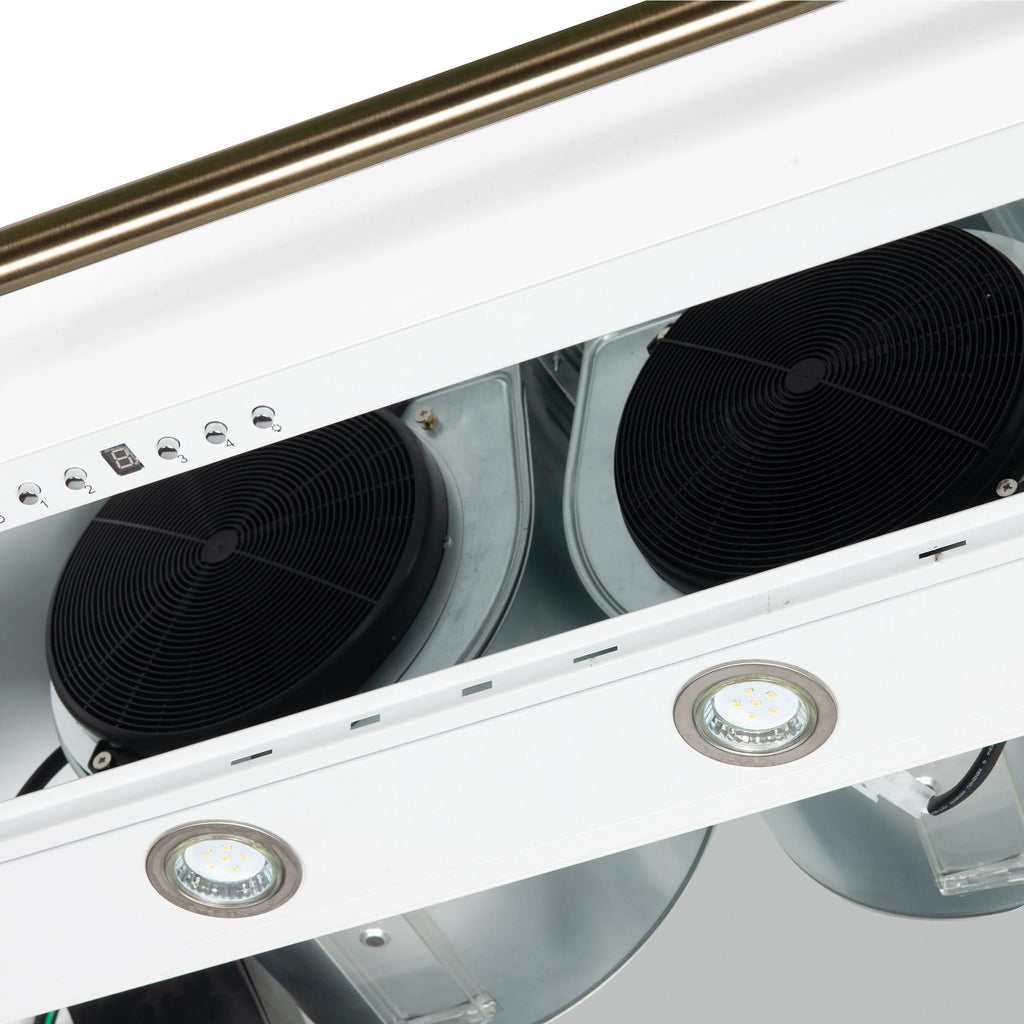 Cette hotte de cuisinière murale de 48 pouces est conçue pour une ventilation de cuisine haute performance. Avec un moteur puissant de 1200 CFM et un ventilateur à 4 vitesses, il élimine la fumée, la graisse et les odeurs de cuisson. Conçu pour une installation par conduit, la sortie verticale d’air vers le haut assure un flux d’air efficace, tandis que des caractéristiques comme l’arrêt automatique, une minuterie intégrée et des filtres à charbon amovibles rendent l’utilisation et l’entretien pratiques. Le kit d’extension de cheminée inclus et la moulure décorative permettent un look personnalisé et intégré. Fonctionnement silencieux à seulement 68 dB avec éclairage intégré pour une meilleure visibilité pendant la cuisson.