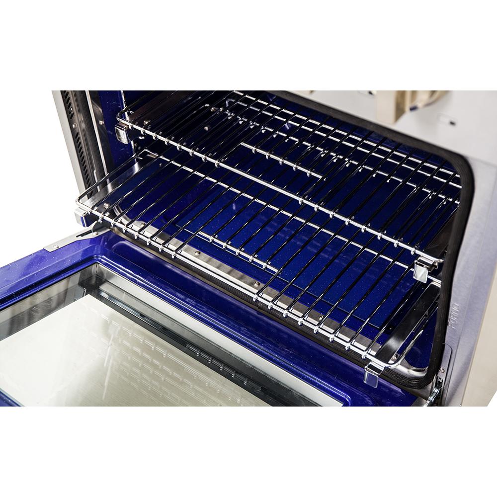 Le Forno bicombulstible de 36 pouces apporte un style et une expérience professionnel dans votre cuisine grâce à sa conception durable en acier inoxydable de qualité 304. La surface de cuisson est équipée de 6 brûleurs scellés d'une puissance totale de 83 000 BTU, dont 1 brûleur double à anneau scellé pour mijoter délicatement le chocolat fondu ou préparer des sauces, et un brûleur double de 20 000 BTU pour faire bouillir ou saisir, capable de réaliser des mijotages comme la fonte de chocolat ou de sauces. Les grilles en fonte continue offrent une stabilité maximale des ustensiles de cuisine sur une cavité de surface de cuisson en émail encastrée, ce qui permet de contenir les éclaboussures et les déversements et facilite le nettoyage. Ce four à convection véritable d'une capacité de 5,36 pieds cubes dispose d'un intérieur en émail bleu ce qui permet un nettoyage facile. La fenêtre du hublot du four en verre à 3 couches assure à la fois une rétention de chaleur et une vue dégagée. Ce four offre également une puissance totale de 6 300 watts, fournissant amplement de puissance pour la cuisson, la rôtisserie et la cuisson au four. Sont inclus 2 grilles de four entièrement télescopiques en acier inoxydable, un anneau de wok concave et un kit de conversion LP. De plus, les boutons en métal revêtus de zinc avec des bagues en biseau conserveront leur beauté pendant des années. La série 6125 est distribuée en quantité limitée. Tous les produits FORNO sont accompagnés d'une garantie de 2 ans.