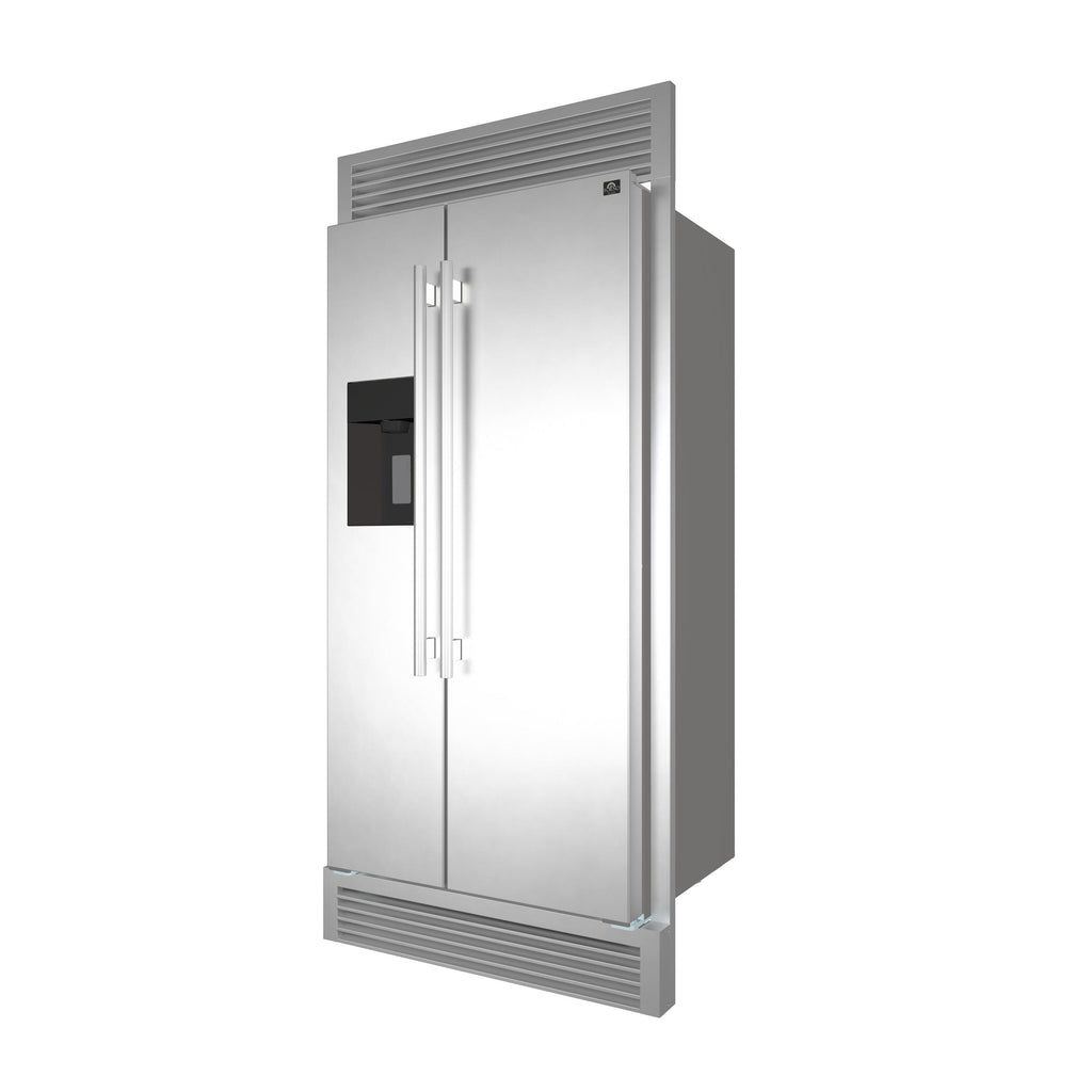 Le réfrigérateur/congélateur côte à côte Forno de 36 po offre une conception autonome sans givre avec un système de refroidissement à flux d’air multiple, avec une capacité totale de 20 pi³ et des étagères réglables pour répondre à tous vos besoins d’épicerie. La commande à écran tactile offre un accès intuitif et rapide aux commandes de température. Une alarme de porte laissée ouverte, un mode de verrouillage pour enfants, un mode vacances, un réglage pratique du gel rapide et un éclairage à DEL blanc brillant et écoénergétique offrant un éclairage élégant dans tout l’habitacle. Le compartiment pour aliments frais a une capacité de 13,48 pi³. avec 2 tablettes en verre réglables, 2 bacs à gallons et tiroirs à légumes faciles d’accès lorsque les portes sont ouvertes à 90°. Deux tiroirs coulissants pouvant accueillir un congélateur de 6,53 pi³ et une machine à glaçons. Logé en acier inoxydable sans danger pour les aliments, arborant un look élégant conçu pour durer. Tous les réfrigérateurs Forno sont couverts par une garantie de 2 ans pour votre satisfaction et une cote énergétique E-star.