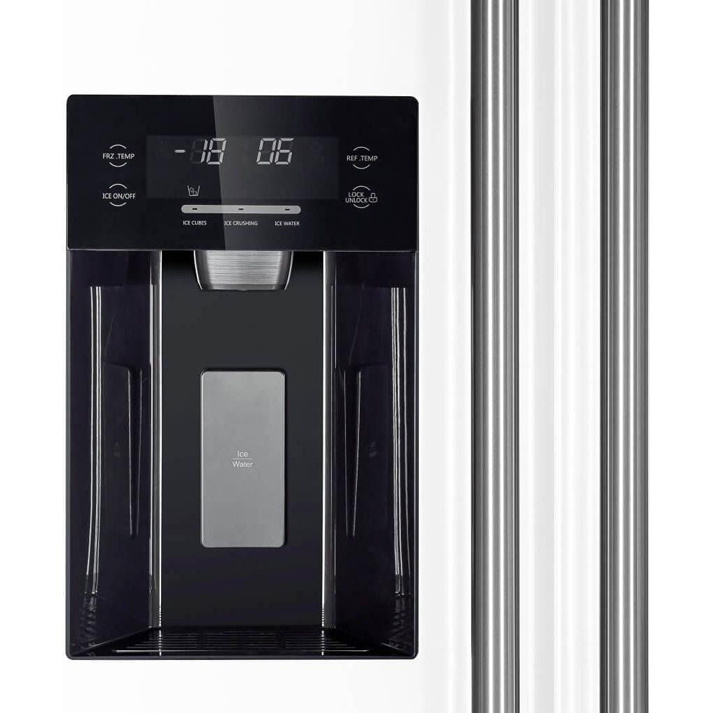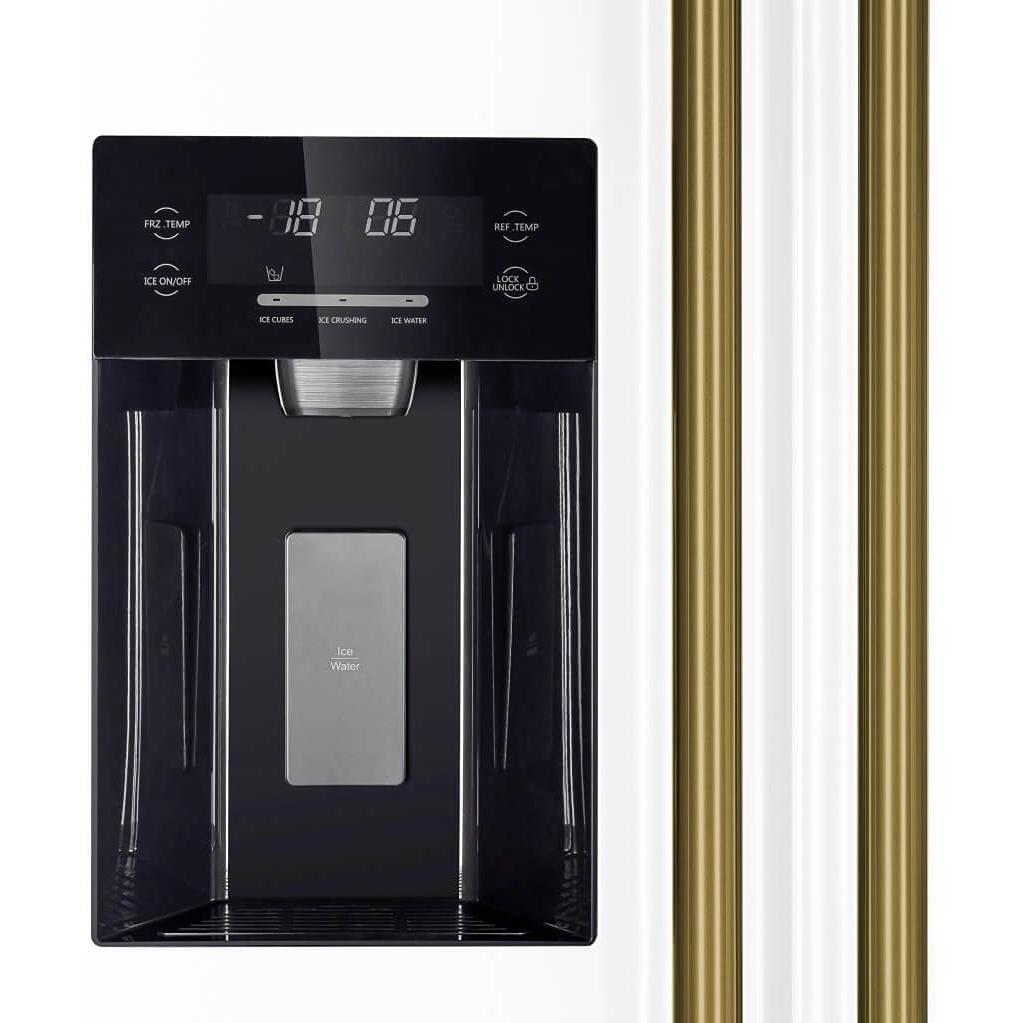 Le réfrigérateur blanc côte à côte de 36 po de Forno Salerno offre une performance optimale et maximise l’efficacité du stockage. L’onduleur du compresseur garantit une efficacité énergétique, un fonctionnement silencieux et un contrôle précis de la température pour une fraîcheur optimale. Doté d’un système de refroidissement à flux d’air multiple sans givre, cet appareil est doté d’une capacité de 20 pi³. Capacité et étagères réglables pour un rangement d’épicerie polyvalent. Faites l’expérience de la commodité avec le distributeur d’eau et de glaçons, doté d’un écran tactile pour un accès intuitif aux options de glace et aux contrôles de température. La capacité d’entreposage des aliments frais de 13,48 pi³. Comprend 4 tablettes anti-éclaboussures, 3 bacs de porte, 1 bac d’un gallon et 2 tiroirs à bacs à légumes. Le produit de 6,53 pi³. L’entreposage au congélateur offre 3 tablettes anti-éclaboussures, 2 bacs de porte et 2 tiroirs de rangement, assurant une organisation optimale. Ce réfrigérateur est certifié ENERGY STAR pour son efficacité, et l’éclairage à DEL à haut rendement minimise la détérioration des aliments. Les poignées en laiton antique ajoutent une touche finale élégante à cet appareil performant et élégant.