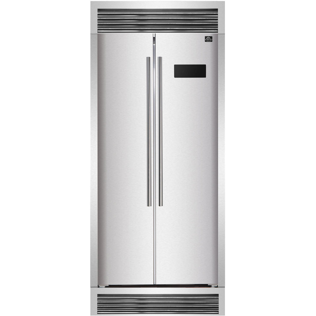 Le réfrigérateur côte à côte sans givre Forno Salerno de 37 pouces, d’une capacité totale de 15,6 pi³, offre un design élégant avec une grille décorative et une technologie de pointe. Son système de contrôle de température intelligent à puce ajuste automatiquement les réglages pour maintenir les aliments et les boissons à leur température idéale. Le panneau tactile à DEL permet un accès facile et un contrôle intuitif de toutes les fonctions.
