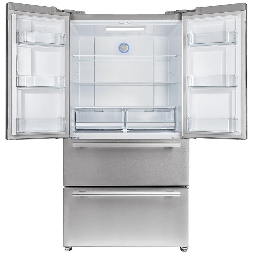 Le réfrigérateur sans givre à portes françaises Forno Moena de 36” avec une capacité de 19,2 pi³ est doté des toutes dernières technologies, y compris un système de contrôle de la température qui ajuste automatiquement les niveaux pour conserver vos aliments et boissons dans des conditions optimales. Un simple panneau tactile à DEL permet un accès facile et un contrôle intuitif de toutes les fonctions.