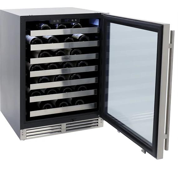 Protégez et mettez en valeur votre collection de vins avec le refroidisseur à vin Sapphire Series 3 Undercounter Single Zone de 24 pouces. Conçu pour les collectionneurs aux goûts premium, ce refroidisseur à vin offre une capacité de stockage de 54 bouteilles pour entreposer et refroidir vos bouteilles. Idéal pour votre cuisine, salle à manger ou espace de divertissement, les réglages de température varient de 38°F à 65°F, permettant une préservation idéale de toute collection. La porte en verre trempé à double vitrage avec un revêtement UV protège votre vin de la lumière nocive. Ce modèle prêt pour panneaux en acier inoxydable est équipé d’un panneau en acier inoxydable avec poignée en acier inoxydable, facilement convertible en panneau de porte et poignée personnalisés de 3/4". Avec son élégant extérieur et intérieur noir, ce refroidisseur à vin à double température complète n’importe quel espace de divertissement, à l’intérieur comme à l’extérieur. Ce réfrigérateur à vin à zone unique n’a aucun dégagement, des charnières avec assistance à fermeture de porte. Le système de contrôle électronique, facile à utiliser, gère activement votre système de réfrigération, incluant l’éclairage, l’alarme de porte entrouverte et les alertes de défaillance de température. Le système de refroidissement assisté par ventilateur permet des températures uniformes, des temps de refroidissement plus rapides et une efficacité accrue. L’éclairage DEL affleurant peut être réglé pour exposer votre collection pendant 4 ou 6 heures. Le système de détachement adaptable comprend 6 étagères à vin à l’avant en acier inoxydable à extension complète et 1 étagère à vin sur la moitié inférieure. Un design précis sans dégagement permet une intégration inégalée dans n’importe quel environnement intégré, faisant de ce refroidisseur à vin un bel ajout à votre maison. Vivez le choix parfait pour votre collection de vins maison avec le Sapphire Series 3 Single Zone Wine Cooler. Couvert par la garantie limitée des pièces Sapphire de deux ans, de la main-d’œuvre sur place et des pièces de compresseur de cinq ans.